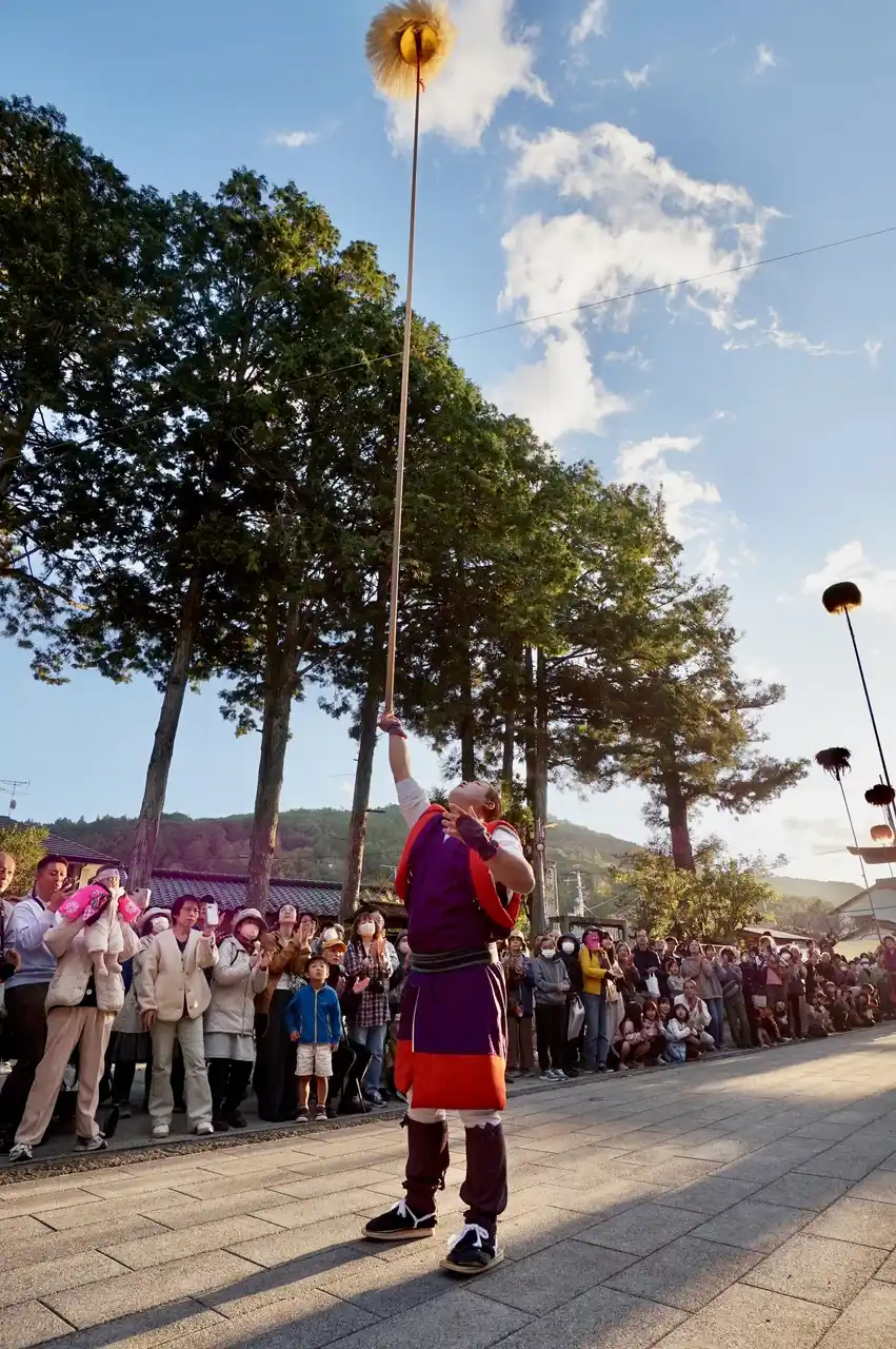 | 持ち手の男性達は皆ぐっと歯を食いしばった表情で、全身を使って大鳥毛を支えていて、その力強さに早くも感動が走りました。 | ||||||||||||||