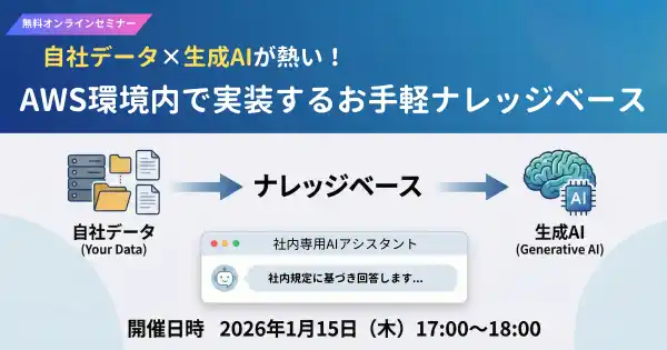 こうした背景を踏まえ、本セミナーでは、AWS環境におけるナレッジベース構築を中心に据え、自社データと生成AIを組み合わせた業務効率化の具体的なアプローチを解説します。冒頭で生成AI活用の現状課題とバックオフィス業務における課題を整理したうえで、Amazon Bedrockを活用したRAG(Retrieval-Augmented Generation)の仕組み、さらにre:Invent 2025で発表されたAmazon S3 Vectorsを用いた最新のナレッジベース構築手法についてご紹介いたします。