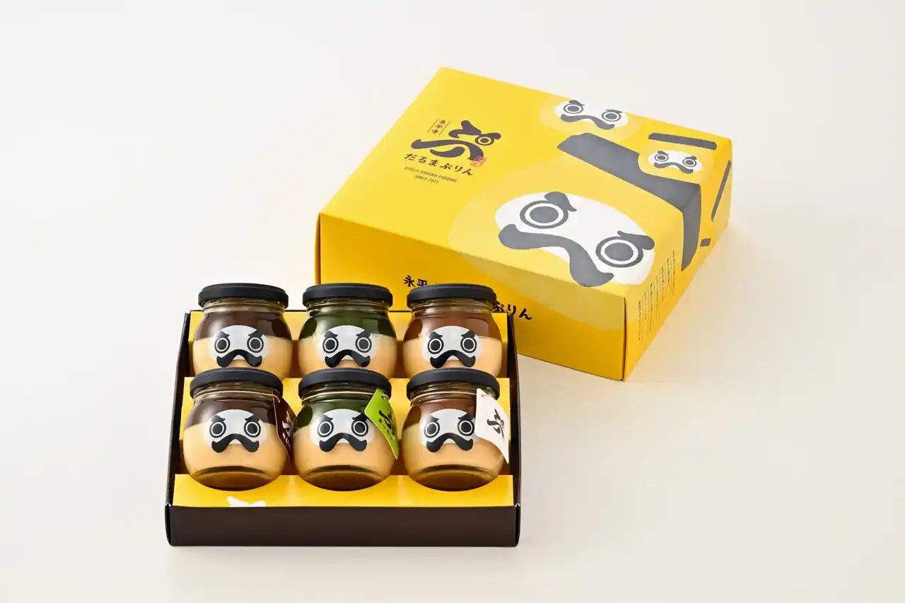 「福井の冬といえば“水ようかん”。 その味わいを、だるまぷりんらしい形で楽しんでいただきたくて、三つの個性をひと箱にしました。 ひと口ごとに、ほっと笑顔になれる時間を過ごしていただけたら嬉しいです。」 |