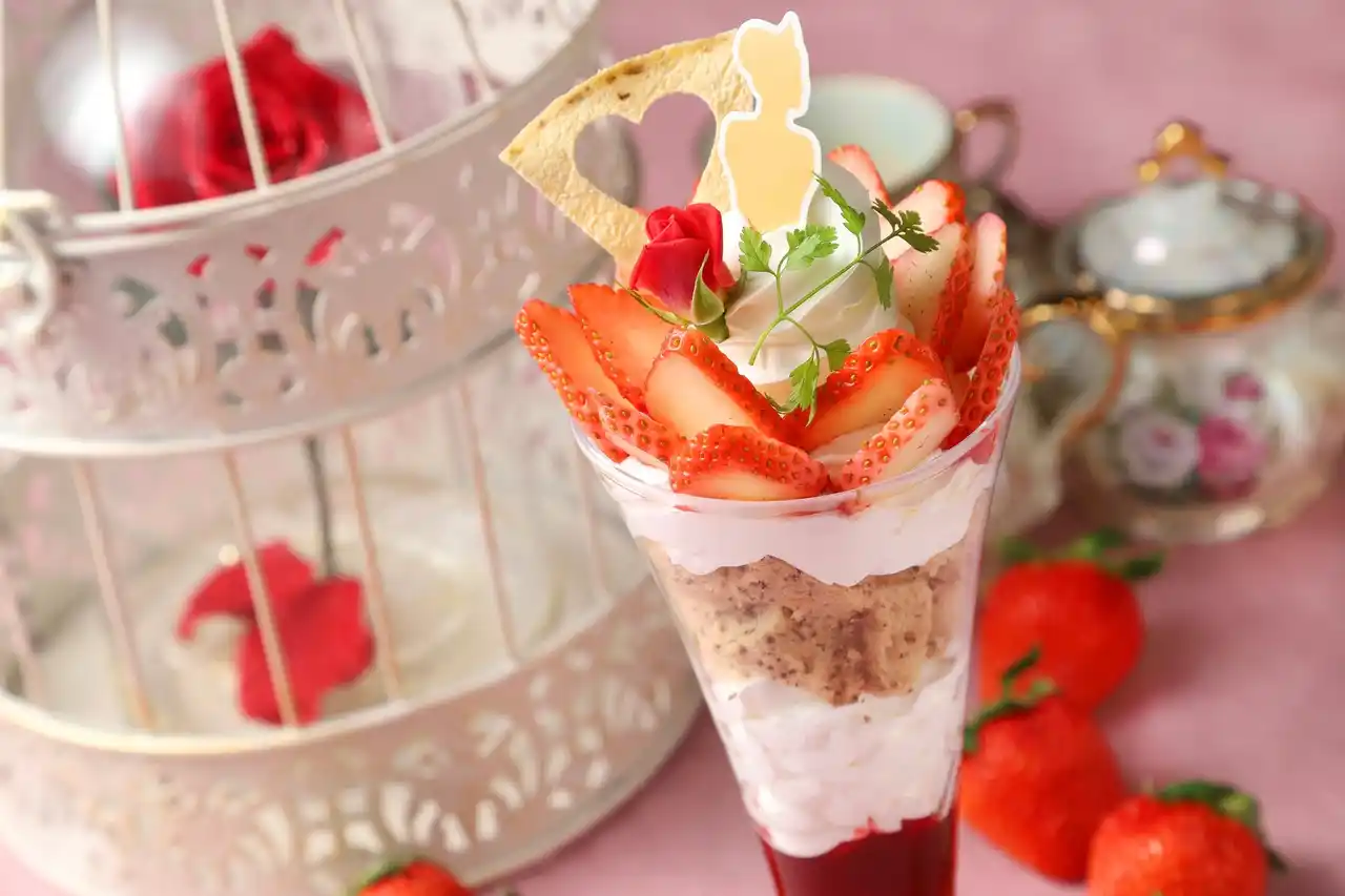 本フェアでは、物語に登場するキャラクターやモチーフをイメージし、旬の苺を贅沢に使用したスイーツとドリンクを多数ご用意しました。 冬から春へ移ろう季節にぴったりな、見た目にも華やかなメニューが、まるで物語の中に迷い込んだかのような特別なひとときを演出します。店内は「美女と野獣」の世界観に包まれ、デートや女子会、記念日など、特別な一日にふさわしい空間をご提供いたします。 |