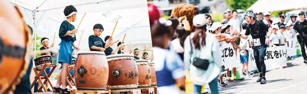 地元住民による声援や太鼓の響きも、エイド以上にランナーの力となります。沿道全体が一体となって応援する暖かさが、過酷な距離を走る力になります。 |
