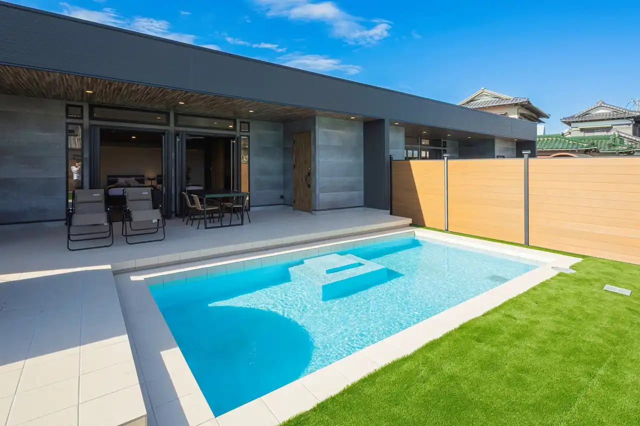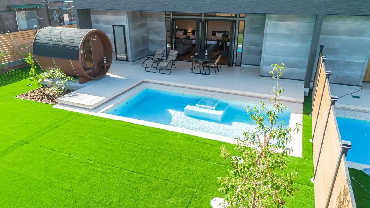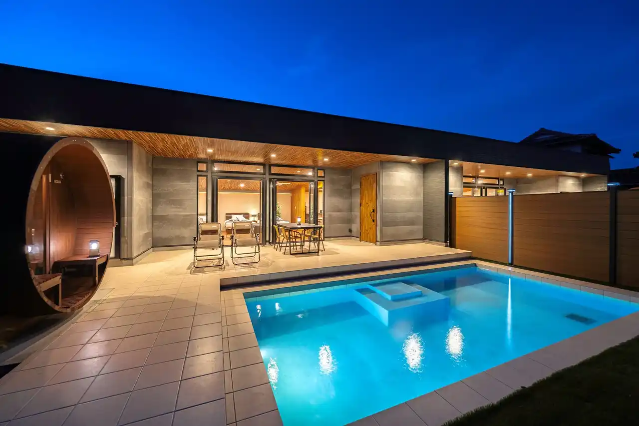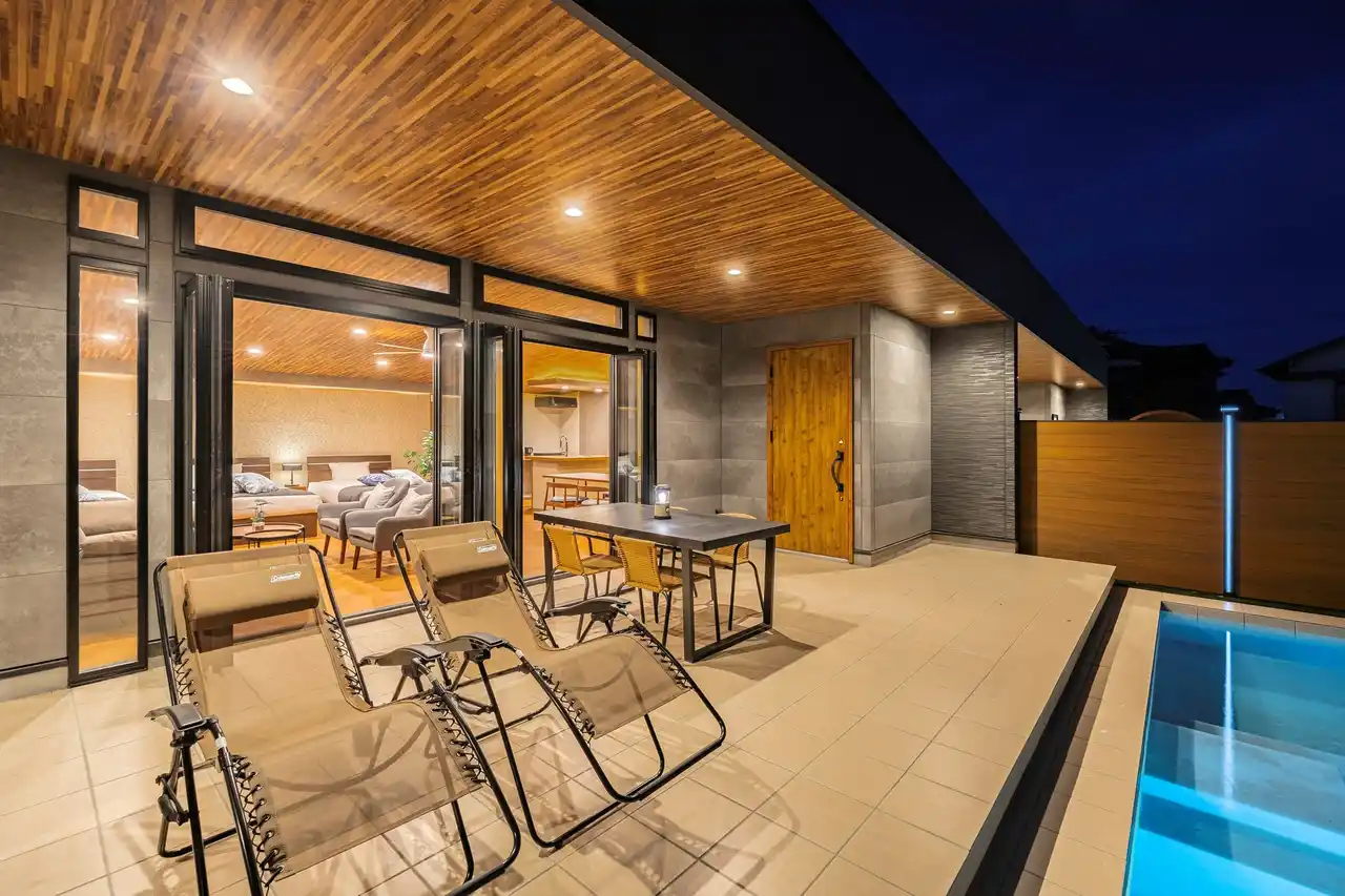 各棟に備えられたプライベートプールは他のお客様を気にせず、ご家族だけでゆったり楽しめる特別な空間です。 |