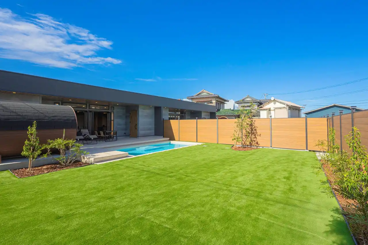 プールサイドからは、愛犬と一緒にそのまま専用ドッグランへ自由にアクセスでき、遊びたいときにすぐ楽しめる便利な動線も魅力です。 |