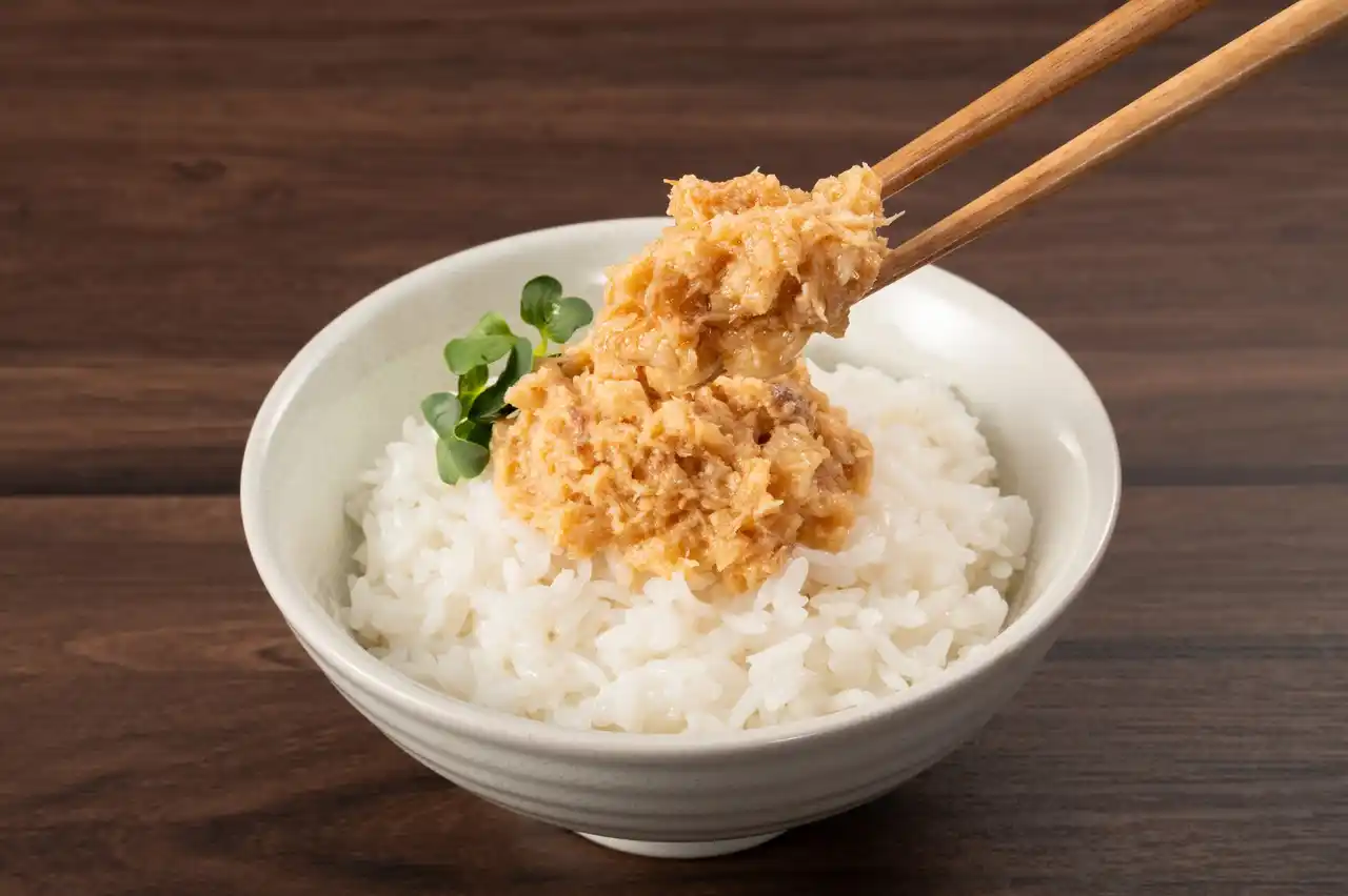 ごはん、豆腐、パン、お茶漬け、パスタにもよく合う、万能な瓶詰ごちそう。 |