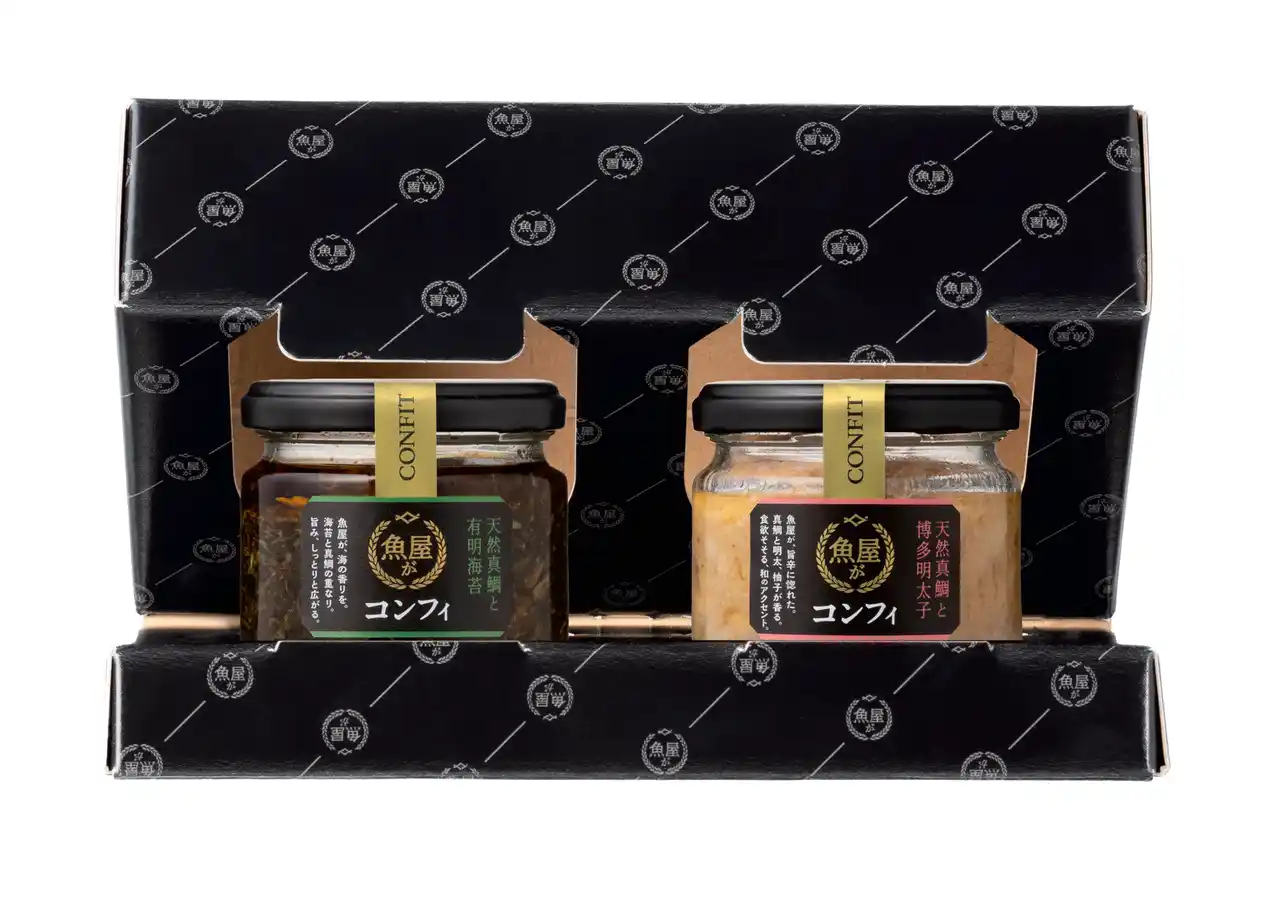 魚屋がコンフィ 天然真鯛と有明海苔、天然真鯛と博多明太子 2本セット(箱入り) |