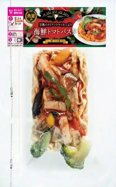 電子レンジで完成。 魚屋が選び、魚屋がつくる、本格魚介パスタ。 |