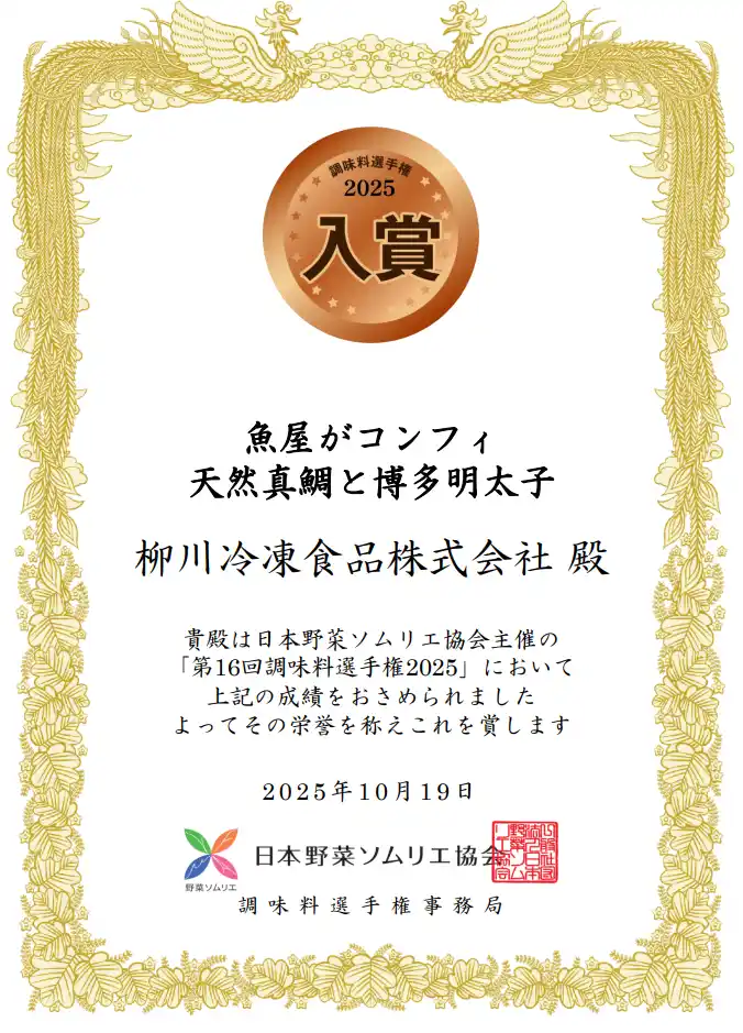 調味料選手権2025年 入賞 魚屋がコンフィ 天然真鯛と博多明太子 |