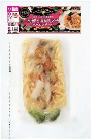 【製品概要】 1.海鮮アヒージョ風パスタ 2.海鮮トマトパスタ 3.アサリたっぷりクリームパスタ 4.海鮮レモンペッパーパスタ5.海老入りボロネーゼパスタ6.海鮮と博多明太子のクリームパスタ 7.海鮮スパイスカレーパスタ 8.海鮮と有明海苔のペペロンチーノ 9.海鮮と博多明太子のペペロンチーノ |