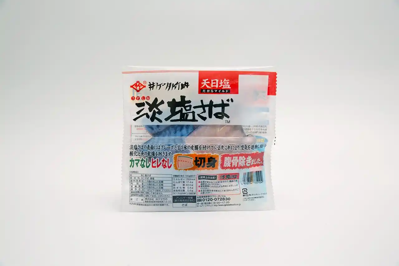 「淡塩さば」は発売から45年以上にわたり、多くの皆様にご愛顧いただいております。脂の乗った旬のタイセイヨウサバを使用し、こだわりの塩加減で素材の味を引き立てた商品です。 |