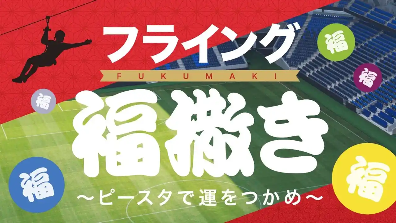 ■初開催!スタジアム上空を滑走するジップラインから福を掴み取れ!「フライング福撒き~ピースタで運をつかめ~」 |