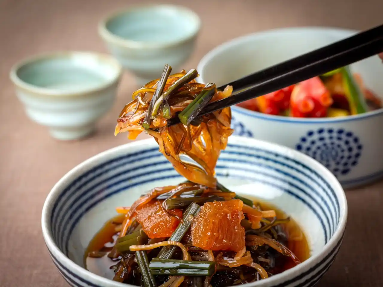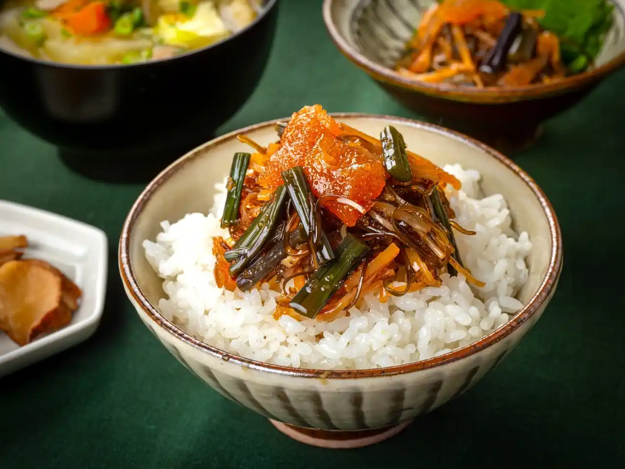 西わらび特有のなめらかなとろみと松前漬けの旨みが重なり合うことで、これまでにない美味しさのハーモニーが生まれました。さらに、ぷちぷち・こりこり・とろとろ--食材ごとの異なる食感が楽しい、満足感のある一品に仕上がっています。 |