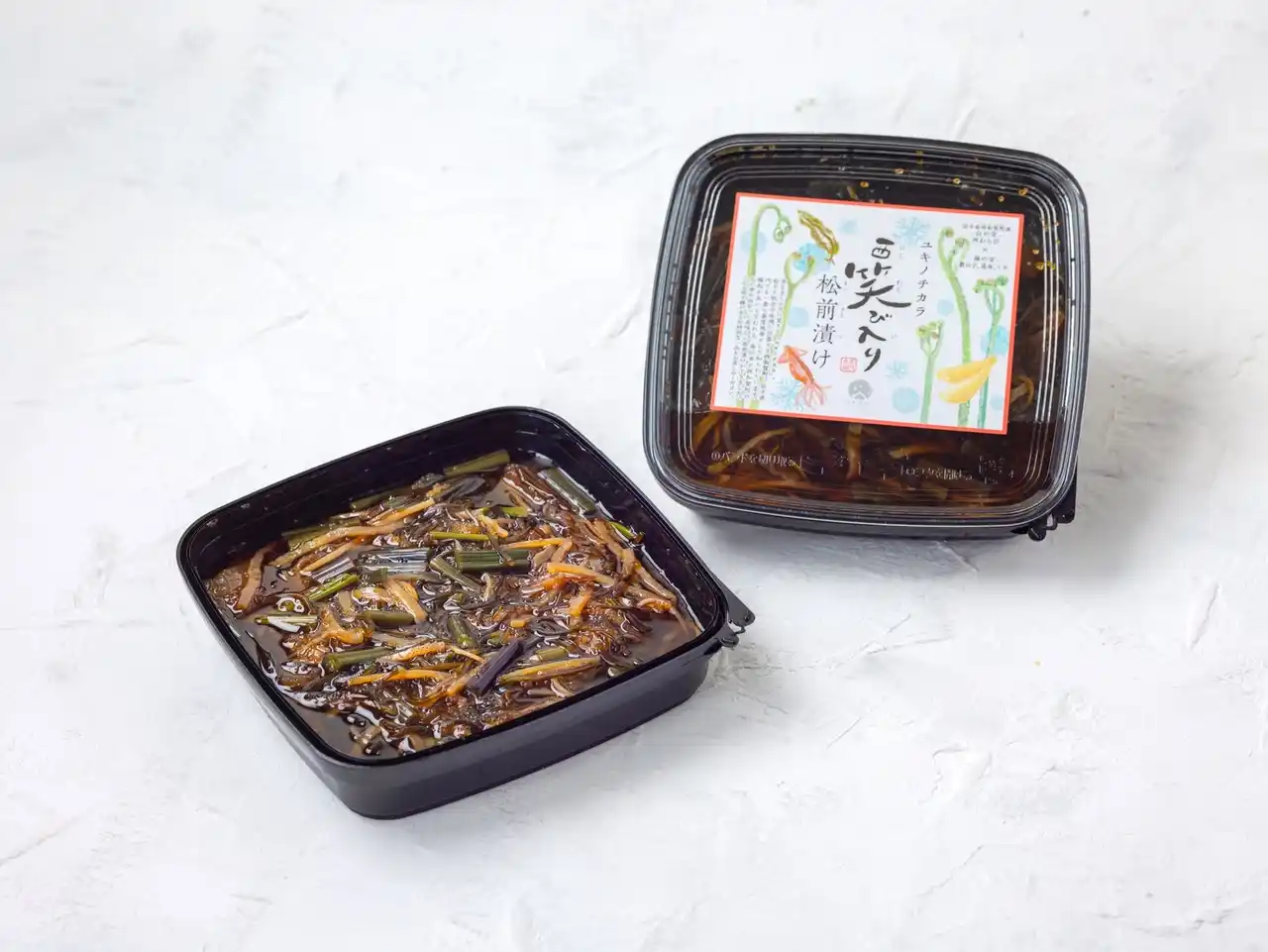 本商品は、日本で初めてGI登録された山菜 “西わらび” を主役に、数の子・昆布・イカなど海の幸を贅沢に使用した、特別仕立ての松前漬けです。 |