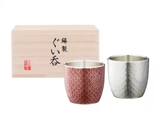 熟練職人の手仕事によって一つひとつ丁寧に仕上げられたぐい呑は、重厚感がありながらも口当たりが良く、長く愛用できる品質を備えています。結婚祝い・長寿祝い・還暦祝い・法人向け記念品など、贈答品・ギフトとしてもおすすめです。日本製錫器ならではの品格と実用性を兼ね備えた紅白ペアぐい呑を、特別な贈り物にぜひお選びください。