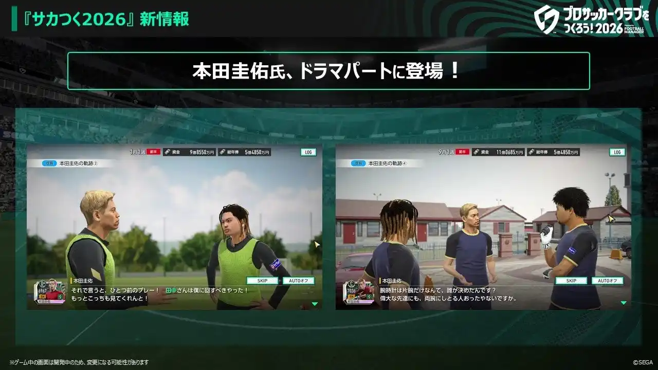 本作アンバサダー、本田圭佑さんのゲーム内での活躍について描かれたドラマパートが登場します。どんなドラマが繰り広げられるのか、ぜひご期待ください。 |