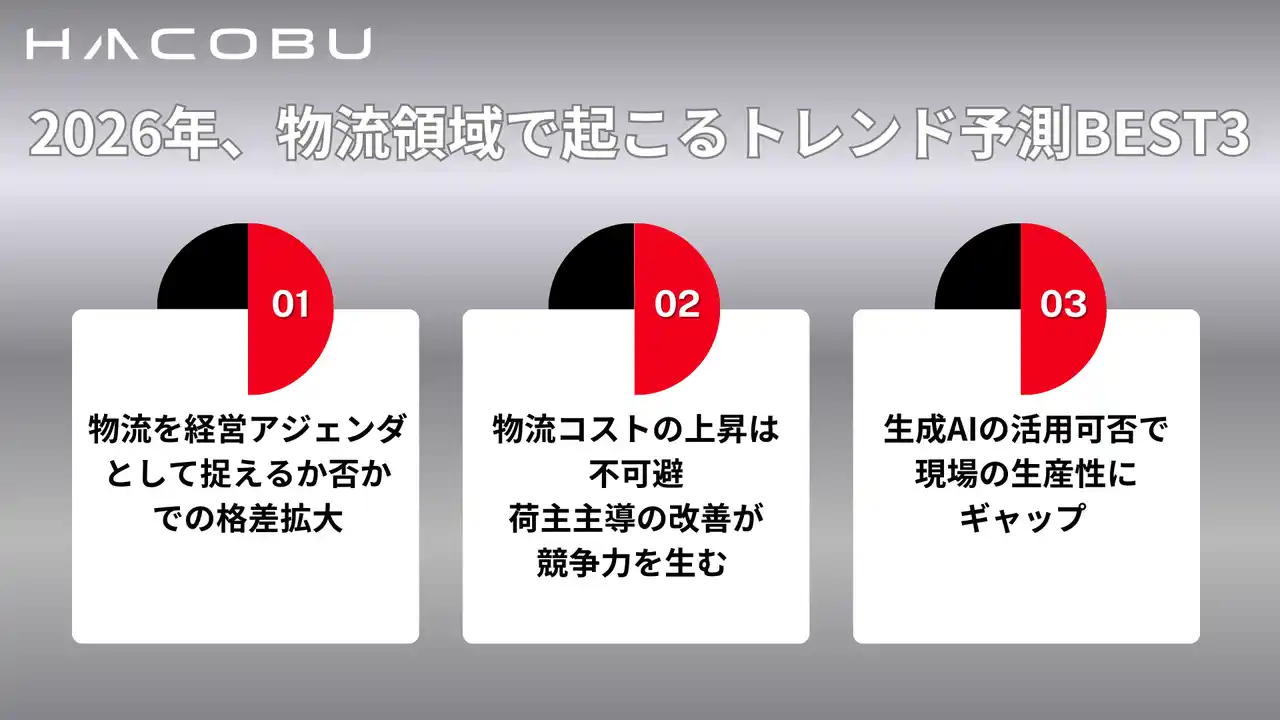 | 2026年、物流領域で起こるトレンド予測BEST3 | |||||||||