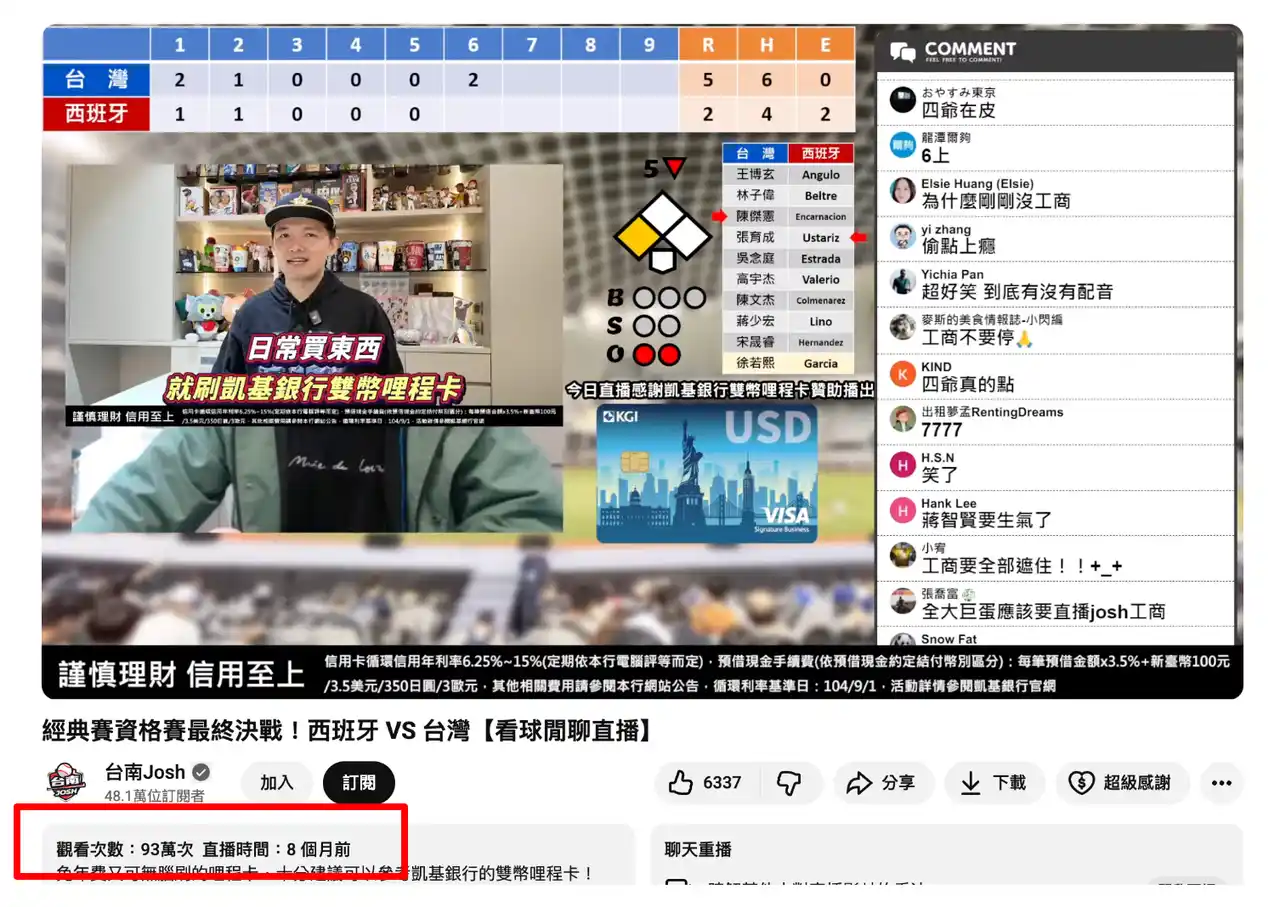 ・インフルエンサー: 台南Josh(台湾最大級の野球YouTuber / 登録者数47万人) |
