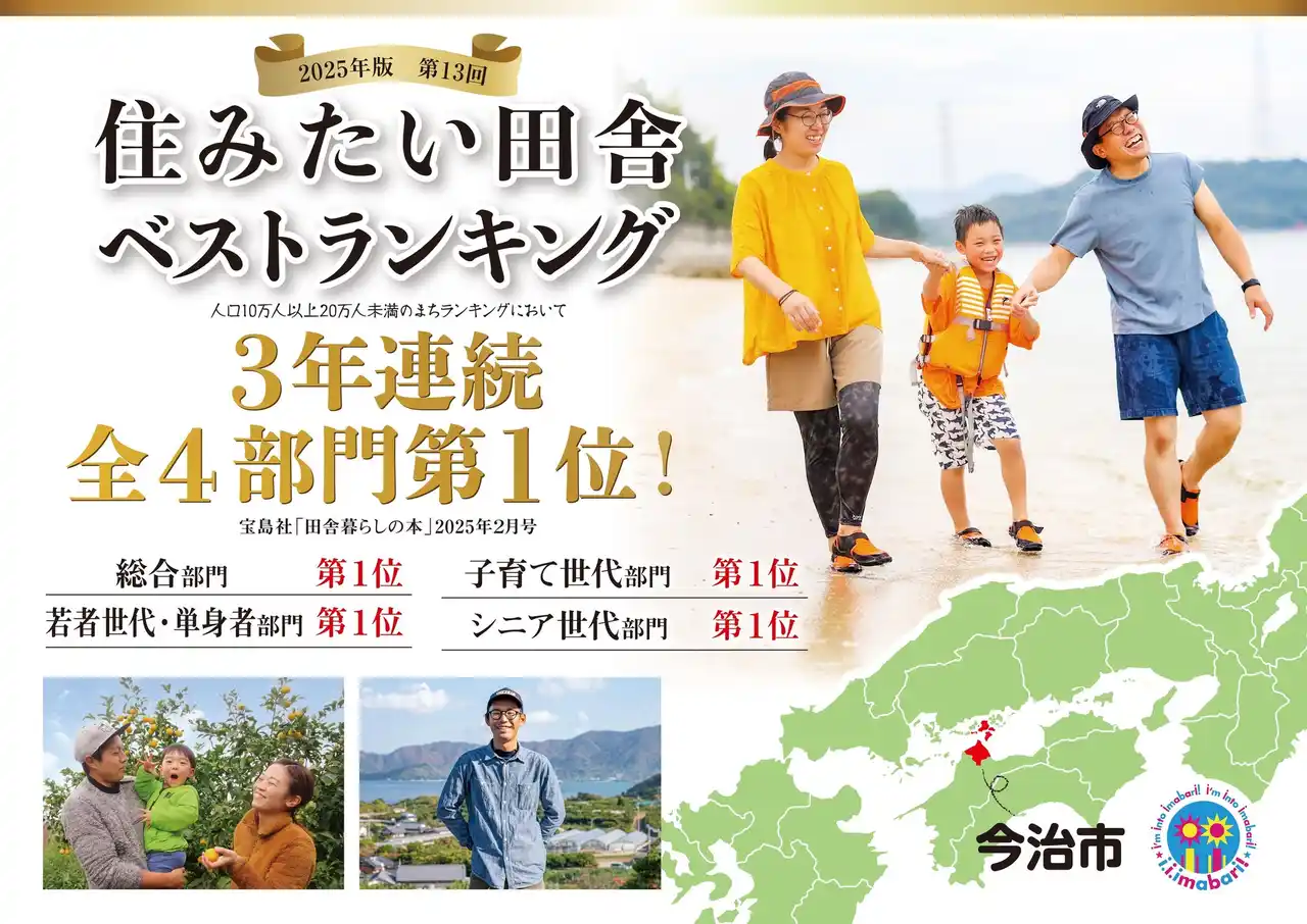 皆様からふるさと納税を通じて頂きましたご支援(寄附金)は、「市民が真ん中」の住みよく、魅力あるまちづくり推進のため、心から感謝の気持ちを込めて大切に活用させていただいております。 その一例として、移住・定住施策などが評価され、「住みたい田舎ベストランキング(人口10万人以上20万人未満のまち)」において3年連続全4部門1位を獲得し、「選ばれるまち」としての地位を確かなものとしております。また、子育て支援の分野においても、妊娠・出産時から18歳まで子育て全般を切れ目なくサポートする「今治版ネウボラ」の取組が評価され、愛媛県内の自治体で初となる「日本子育て支援大賞」を受賞しました。 これからも皆様に選ばれるまちであり続けるよう、精進してまいります。 |