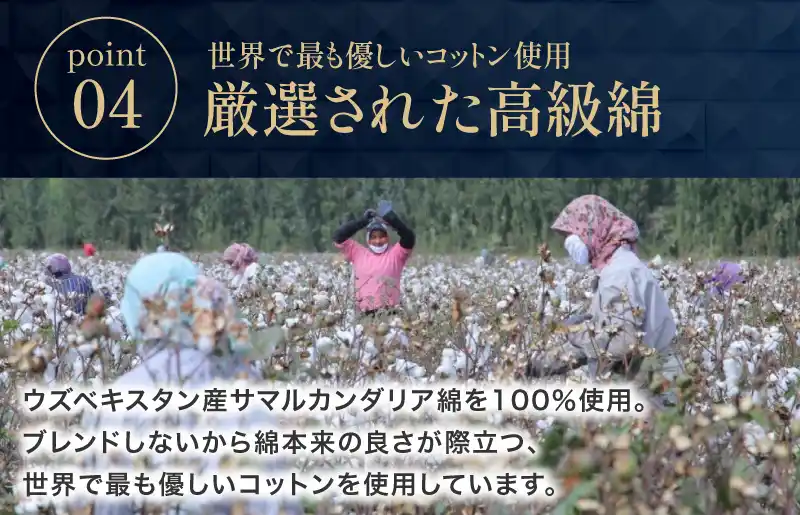高級綿のサマルカンダリア綿を使用 |