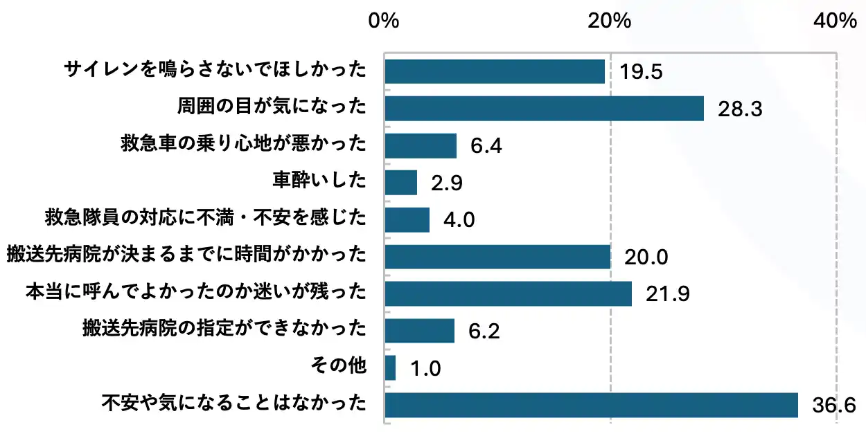 また、救急車を呼んだ経験者の約2割が「本当に呼んでよかったのか迷いが残った」と回答しており、選択肢が増えることで判断に不安を感じる市民も一定数存在することが明らかになりました。 |