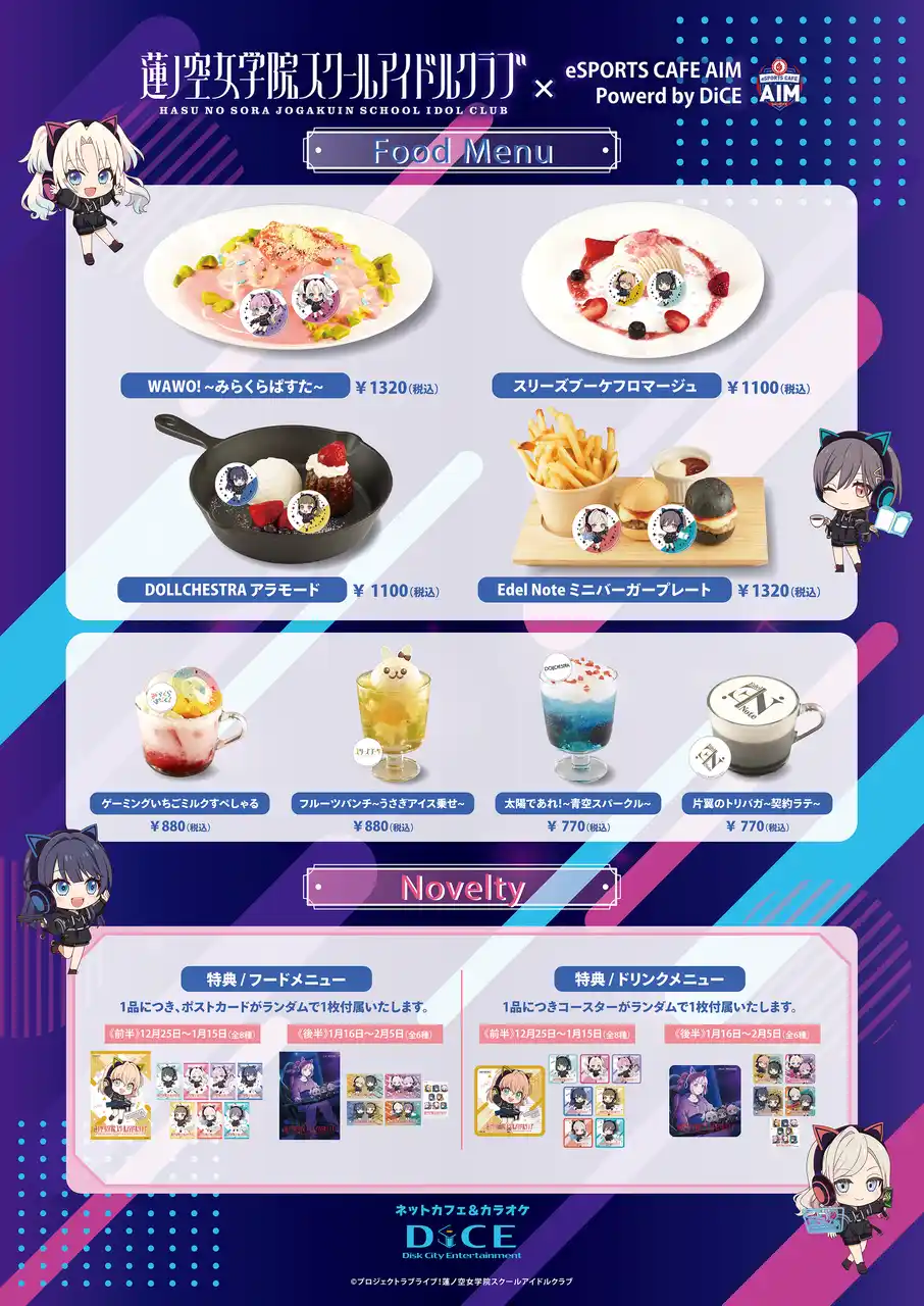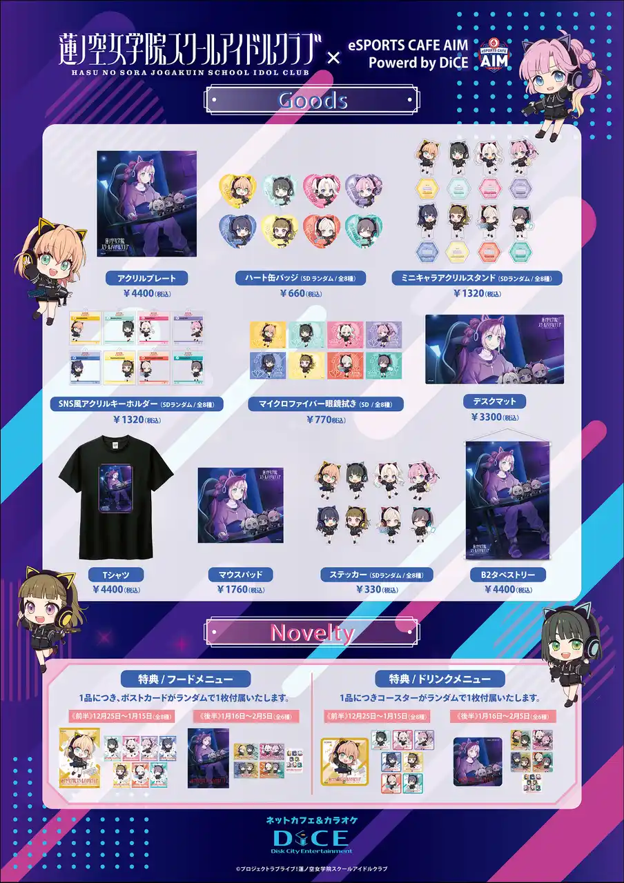 当社のグループ会社、株式会社ディスクシティエンタテインメント(本社:神奈川県横浜市、代表取締役:三田大明)が運営する「ネットカフェ&カラオケDiCE(ダイス)」「eSPORTS CAFE AIM(エイム)」は、2025年12月25日(木)より「ラブライブ!蓮ノ空女学院スクールアイドルクラブ」とのコラボ企画を開催いたします。 |