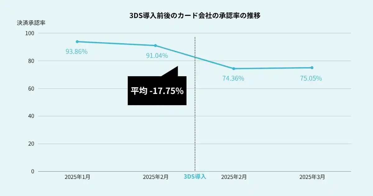 当社が支援する企業における、3Dセキュア導入前後の承認率の平均変動を示した図 |