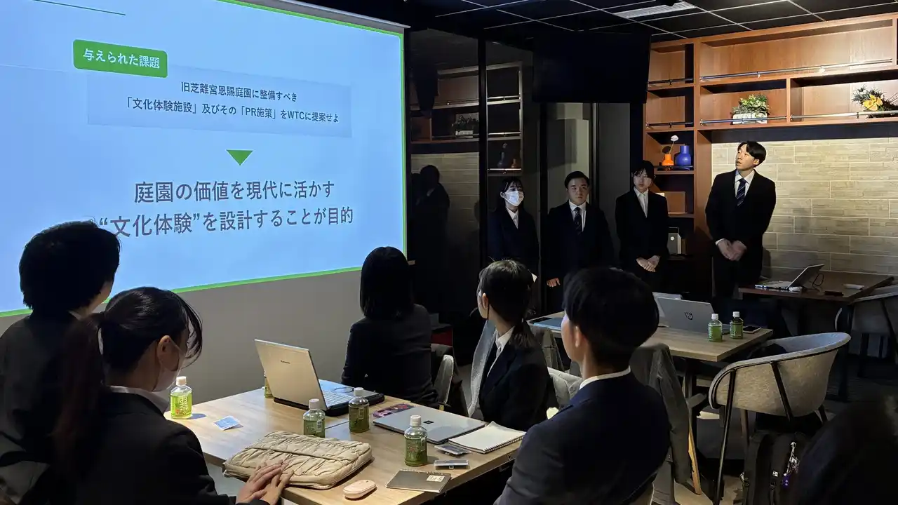 株式会社世界貿易センタービルディング(以下WTC)および一般社団法人浜松町芝大門エリアマネジメントは、東京都市大学 都市生活学部との産学連携プログラムとして、旧芝離宮恩賜庭園を舞台にした文化体験施設およびPR施策の提案をテーマに、最終審査会を開催し、学生による提案の中から各賞を決定しました。 |
