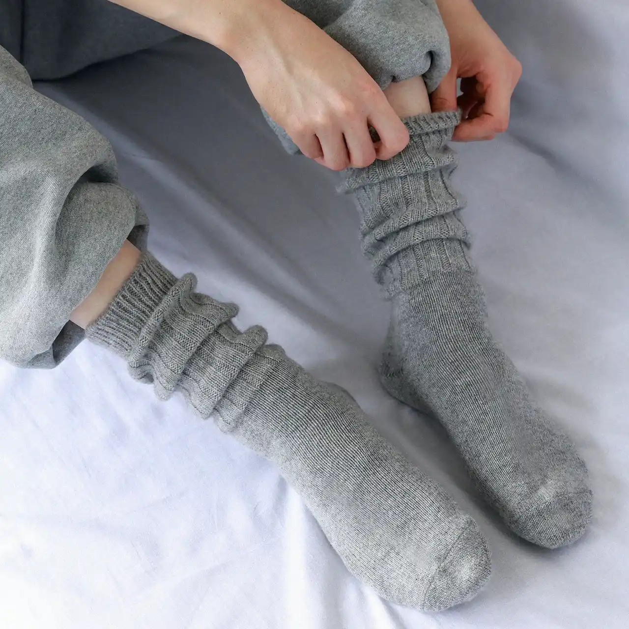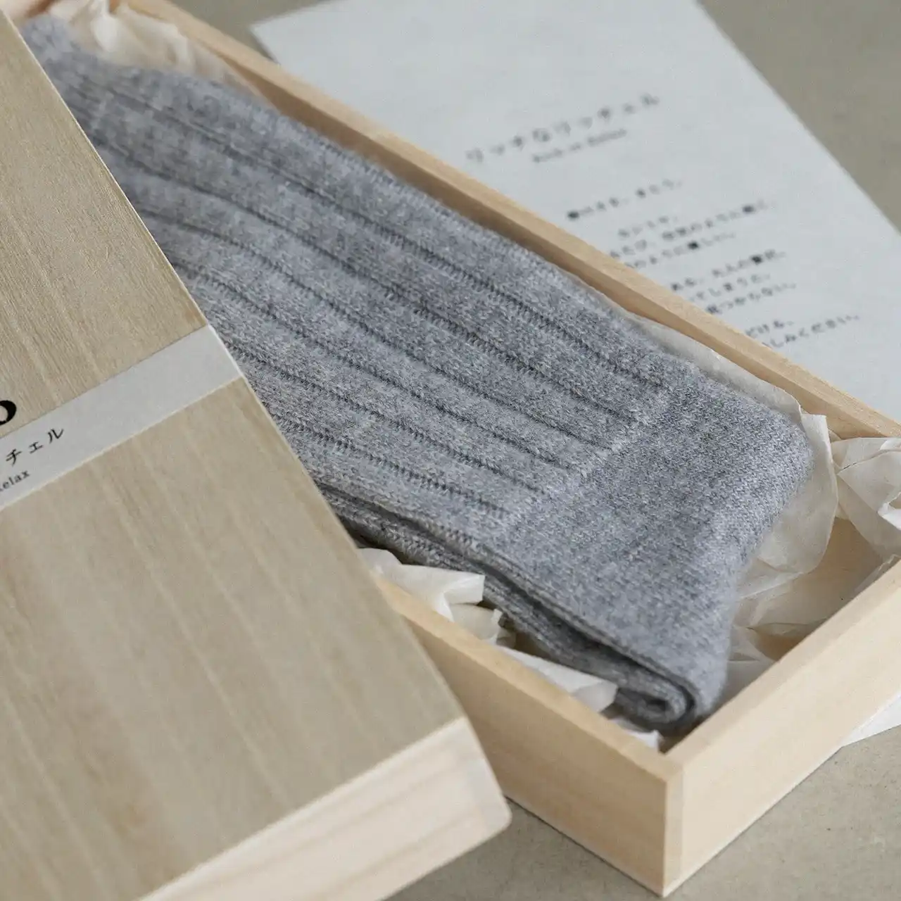 窪塚氏が着用モデルになったことで認知度が高まった、厚手でソフトなリッチェルソックス。それをカシミヤ素材で編み上げた、贅沢な一足です。 |