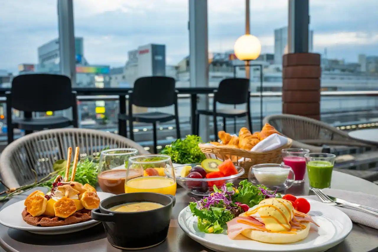 すみだの街を眺めながら味わうロッテシティホテル錦糸町の朝食ビュッフェ(テラス席) |