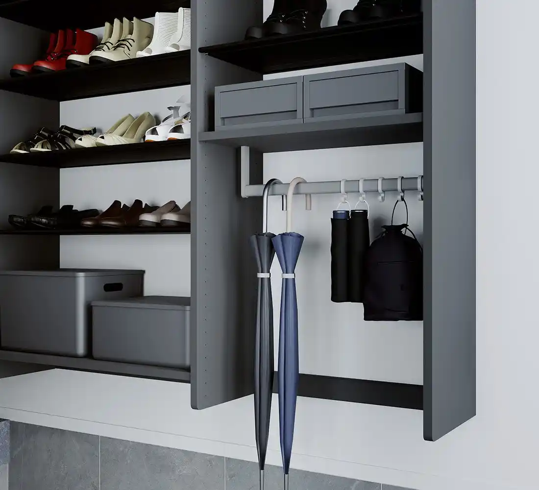 【南海プライウッド株式会社】 シューズクローク収納「ウォールゼット エノーク2」にトレンドカラーのグレー色を新たにラインナップ