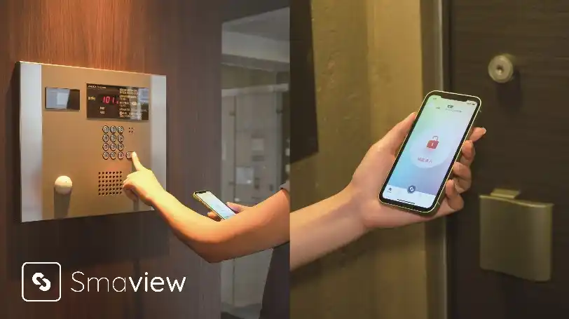 「Smaview 2.0」は、オートロック付きマンションをはじめ、オフィスビルや倉庫・物流施設など、鍵が必要な様々な物件を対象としたクラウド型のスマート入退室サービスです。入退室に用いる鍵情報をデジタル化し、スマートフォンのWebアプリからエントランスおよび専有部の扉を解錠できるため、物理鍵の受け渡しや保管に伴う手間とリスクを大幅に軽減します。 |