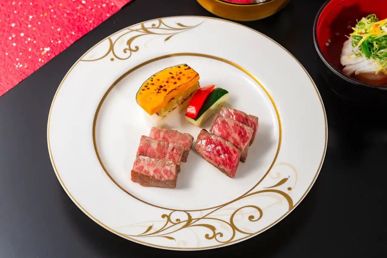 本会席では、広島牛をはじめ、冬に美味しさが増す九絵(くえ)や福焼白子など、料理長が選び抜いた特選素材を惜しみなく使用。 |