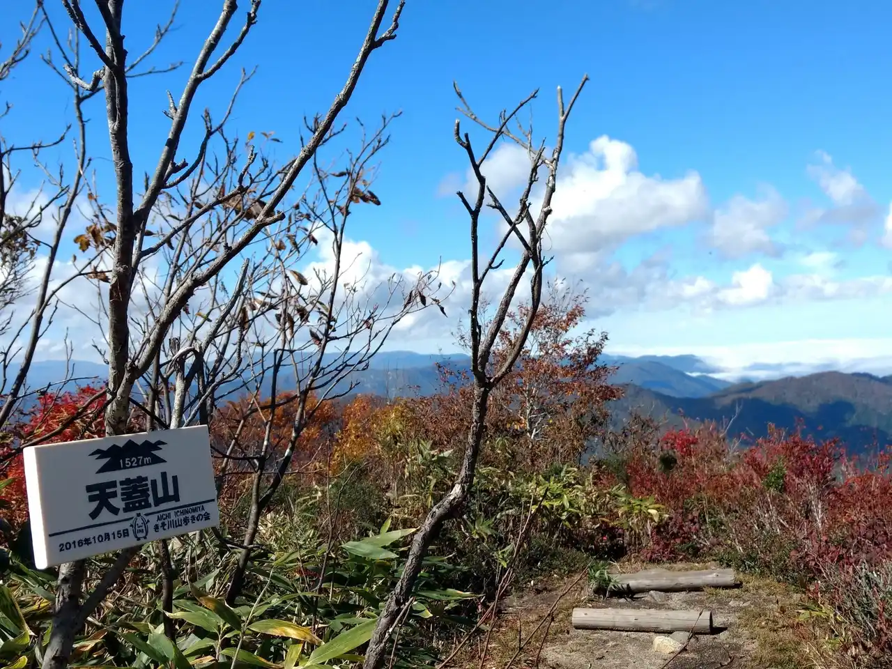 天蓋山は、標高1,525mの山で、登山者からは「北アルプスの展望台」とも称されています。豊かなブナ林や高山植物が見られ、四季折々の美しい景色が堪能できます。 |