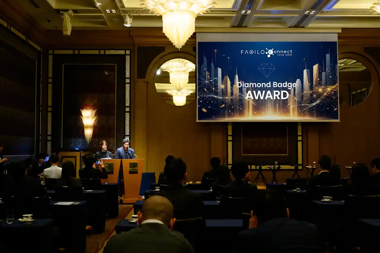 株式会社Facilo(本社:東京都中央区、代表取締役 CEO:市川 紘、以下「ファシロ」)は、2025年12月8日(月)、ザ・リッツ・カールトン東京にて「Facilo Connect 2025 YearEnd Party」を開催しました。住宅新報『2024年度通期売上売買仲介実績』掲載企業のうち、不動産コミュニケーションクラウド『Facilo』(以下、Facilo)を全社的に導入している首都圏の企業を招待。Facilo上で顧客フォローを行い、半年間で10件以上の成約を実現した担当者に授与する社内称号「ダイヤモンドバッジ」の受賞者を多数輩出した企業を表彰しました。当日は、受賞各社が成果創出の取り組みを発表し、不動産仲介業のDX推進に資するベストプラクティスを共有する場となりました。 |