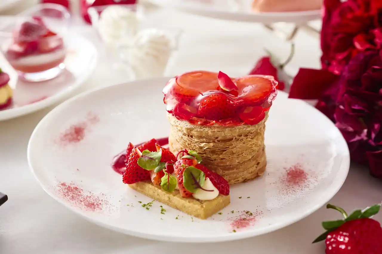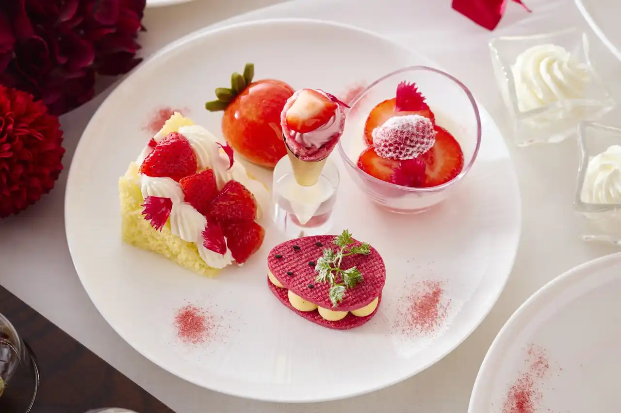 苺好きの方にとって待ち遠しい季節がやって来ました。本年はパティシエが厳選した苺3種の食べ比べもご用意し、苺そのもののフレッシュな味わいと、スイーツ、セイヴォリーとしてさまざまに彩られた苺の魅力をたっぷりとご堪能いただきます。 |