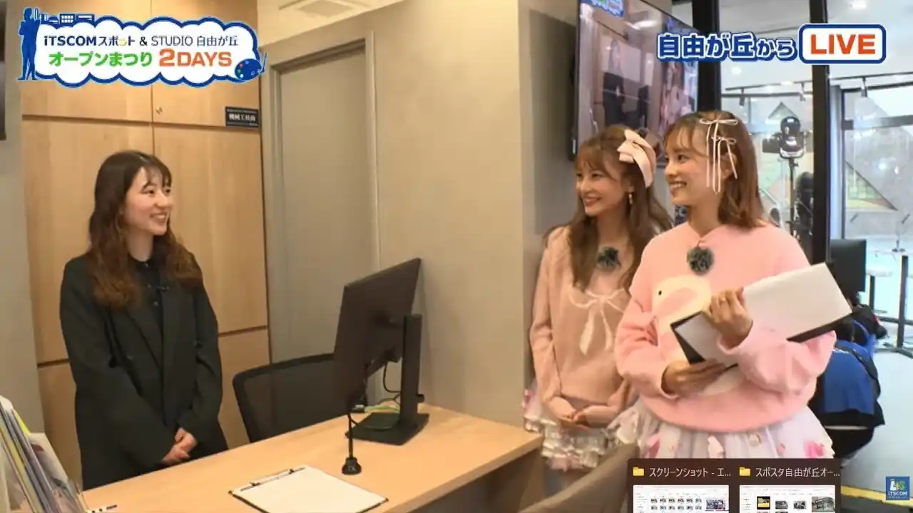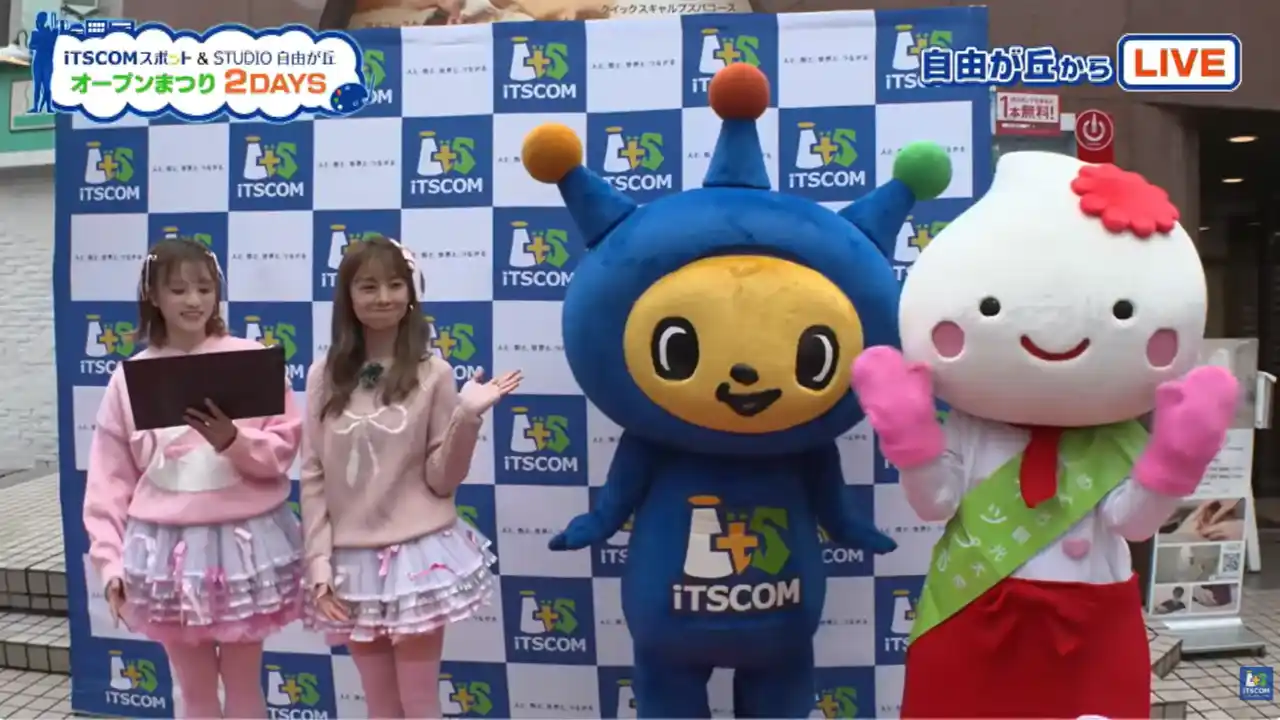 12月20日(土)・21日(日)の2日間、オープンを記念して特別番組『iTSCOMスポット&スタジオ 自由が丘 オープンまつり2DAYS』をイッツコムチャンネルで生放送。あわせて、YouTubeイッツコム公式チャンネルでも生配信を行いました。 スイーツの街としても人気のある自由が丘らしく、番組には自由が丘公式スイーツキャラクター「ホイップるん」も登場。番組MCは、ホイップるん公式アンバサダーのバレエヴォーカルユニットのPOiNTが務めました。 |