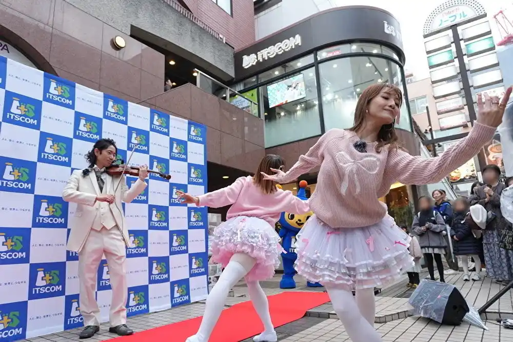 | 番組の後半では、建物1階のオープンスペースを活用し、自由が丘南口アンバサダーを務めるヴァイオリニストのTSUMUZIが、自由が丘のために作曲したオリジナル曲をはじめとする演奏を披露。最後の楽曲では、POiNTがバレエでコラボレーションし、街を行き交う人々も足を止めるなど、会場全体が華やかな祝福ムードに包まれました。 | ||||||||||||||