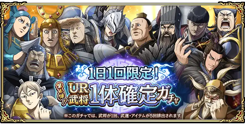 1日1回限定で、UR武将1体を確定で獲得できるガチャを開催! |