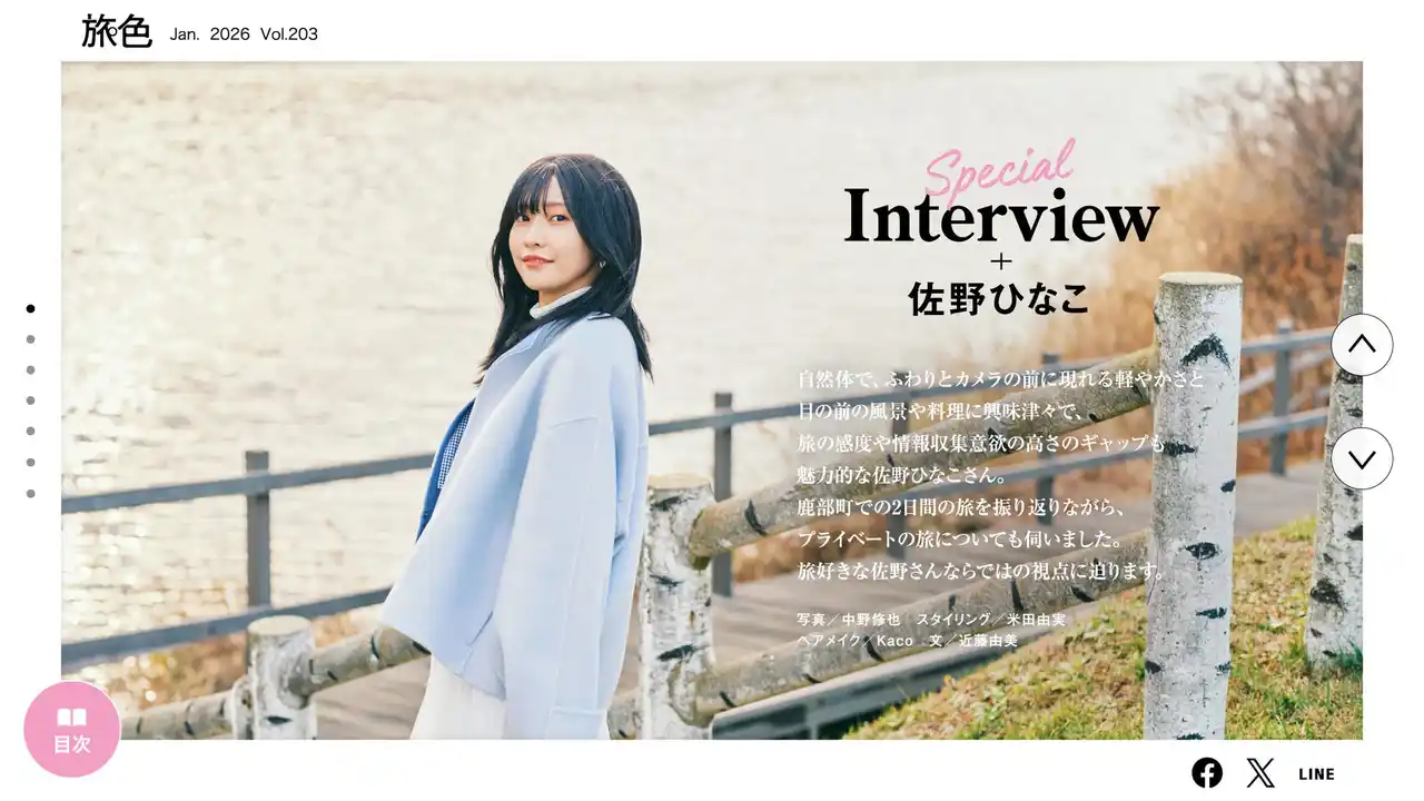 「月刊旅色」2026年1月号 佐野ひなこさんがナビゲートする「海と温泉のまち・北海道鹿部町で はじめましての感動体験」 |