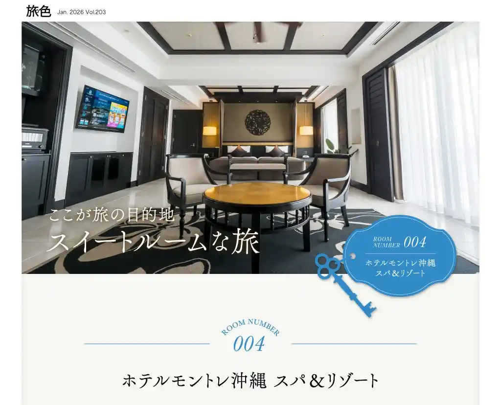 「月刊旅色」1月号 スイートルームな旅 ホテルモントレ沖縄 スパ&リゾート |