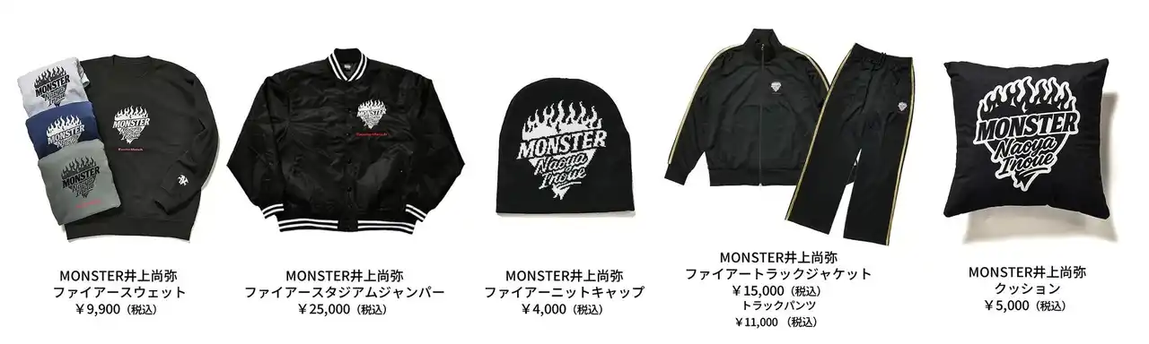 シンプルな表現の中に熱いスピリッツを封じ込めたスウェットやスタジアムジャンパー、クッション等バリエーショ ンに富んだコラボグッズで井上尚弥選手の応援時はもちろん日常使いでもできるデザインです。 |