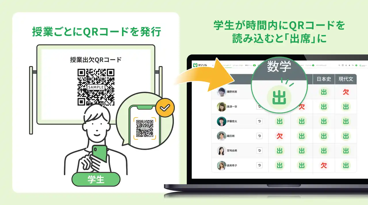 株式会社プラスアルファ・コンサルティング(本社:東京都港区、代表取締役社長:三室 克哉、証券コード:4071)は、スクールマネジメントシステム「ヨリソル」において、授業の出欠をQRコードで記録し、学習者の出欠データを迅速かつ効率的に収集するための「QRコード出欠機能」の提供を開始しました。 |