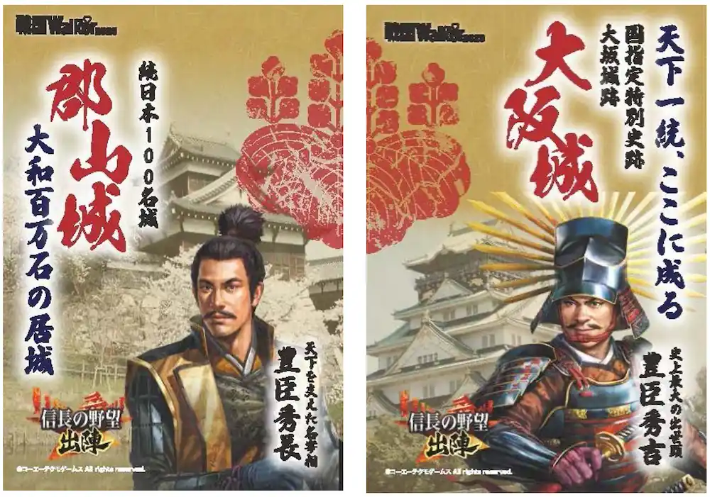 なかでも、位置情報ゲーム「信長の野望 出陣」とのコラボレーションによる豊臣秀吉・豊臣秀長の武将印は、2枚を並べることで一つの絵が完成する特別仕様。コレクション性の高い、ファン必見の付録となっています。 |