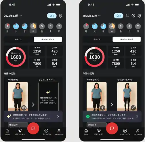 その方法の1つとして、ダイエットや筋トレが続かない人に寄り添い、行動そのものを応援する存在になることです。今回のダッシュボード追加も、「管理するため」ではなく「続けている自分に気づき、前向きになれる」ことを目的に設計されています。 |