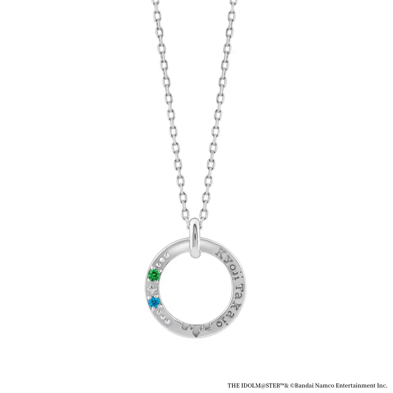 鷹城恭二のイラストで描かれた、ガラスの靴にかけられたネックレスをイメージし、上質なスターリングシルバーでモチーフネックレスを作り上げました。グリーンとブルーのオッドアイをイメージした2色のストーンを留め、地金の装飾で高級感を演出。右側には『Kyoji Takajo』を刻み、下側には『Beit』のマークにある雪の結晶のデザインを入れています。日々のコーディネートの中でさりげなく身に着けていられるシンプルなアイテムです。 |