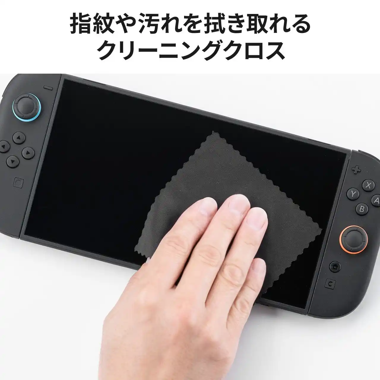 | 指紋や皮脂汚れをさっと拭き取れるクリーニングクロスが付属。ゲーム中や外出先でも画面を清潔に保てます。 | |||||||||