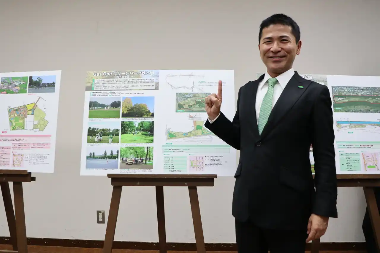 「Gas Oneグリーンパーク秋ヶ瀬」の名称は、Gas Oneのブランドカラーである若竹色と緑溢れる同公園の緑の木々をイメージし、県民に更に親しまれ、広大な緑や貴重な野鳥の生息に加え、埼玉県の蝶である、ミドリシジミの生息地であり、「日本一暮らしやすい埼玉」の実現に向け、県内外にアピールしていきます。 |