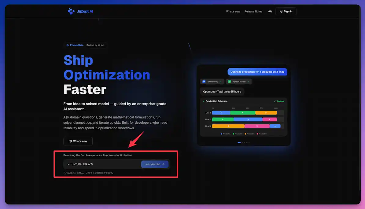 株式会社Jij(本社:東京都港区、代表取締役CEO:山城 悠、以下「Jij」)は、数理最適化の活用を支援するAIアシスタントサービス「JijZept AI(ジェイアイジェイゼプトエーアイ)」のβ版を、本日より招待制にて提供開始したことをお知らせします。 |