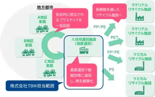 株式会社TBM(本社:東京都千代田区、代表取締役CEO:山崎敦義、以下TBM)は、経済産業省「令和7年度 資源自律経済確立産官学連携加速化事業費(広域自治体における資源循環システムの構築に向けた実証事業)」に参画し、地方都市における地域特性に応じた資源循環システムの構築に向け、再生プラスチックを中心とした再生材の大規模供給体制に関する課題を分析・検証します。 |