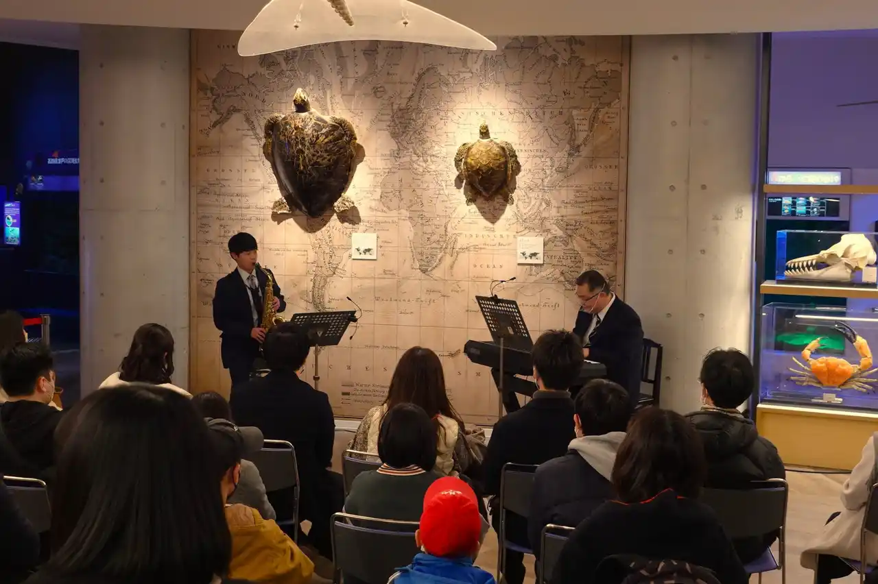 当館を運営する「公益財団法人いばらき文化振興財団」は、茨城県内の文化芸術の振興に取り組んでおり、その一環として、茨城県ゆかりのアーティストたちによる特別ナイトイベントを企画しました。生きものたちに囲まれた幻想的な非日常空間で、臨場感あふれる演奏を堪能できる、特別なイベントです。冬の夜、生きものたちと一緒に、音楽と親しむ特別なひとときをお楽しみください。 |