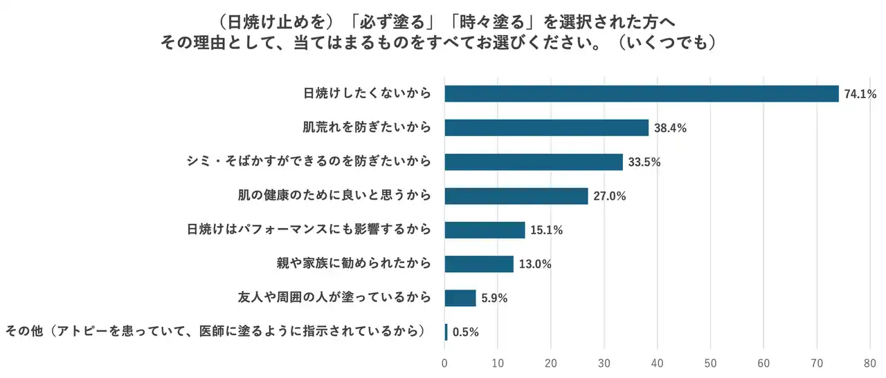 ・さらに、「日焼けはパフォーマンスにも影響するから」という声も一定の割合で存在しており、一部ではスポーツ時のコンディション管理の一環として日焼けを捉える認識が広がり始めていることが考えられます。 |